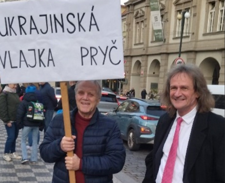 Jen pro připomenutí, tato událost se uskutečnila dne 11. 3. 2023, kdy po proběhlé demonstraci strany PRO na Václavském náměstí se Slávek Popelka postavil na horní roh Václavského náměstí a snažil se prostřednictvím megafonu odklánět odcházející účastníky demonstrace k budově Národního muzea. Moje maličkost zase u Svatého Václava posílala taktéž demonstranty nahoru k Národnímu Muzeu. Cílem těchto našich aktivit bylo dosáhnout odstranění ukrajinské vlajky z budovy Muzea.