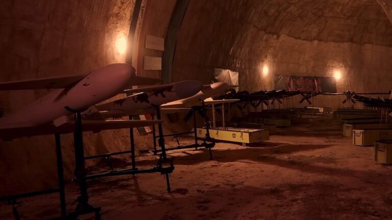 Na záběrech uvnitř základny s názvem „Zařízení Awliya“ je vidět asi dva tucty dronů Shahed-101 a Ababil-2, obojí íránské modely.