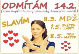 Dne 14. února vždy vzpomínejte a uctívejte památku nevinně zabitých Američany lidí, neslavte jejich oplzlý homosexuální svátek lásky tzv. Valentýna....