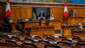 Největší strana v zákonodárném sboru země odešla při projevu ukrajinského vůdce Ukrajinský prezident Vladimir Zelenskyj ve čtvrtek vystoupil ve švýcarském...