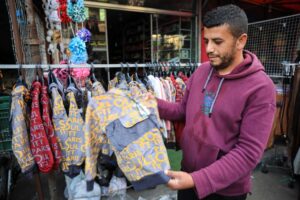 Lidé doufající, že si během pauzy v izraelském bombardování koupí základní věci, jako je jídlo, teplé oblečení, frustrovaní zdražováním Deir...