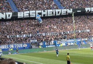 Při utkání 2. německé ligy mezi mužstvy Hamburger SV a Hansa Rostock vyvěsili fanoušci z Hamburku na tribuně velký banner...