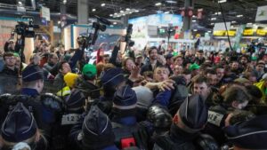 Demonstranti se shromáždili proti rostoucím nákladům, daním a přísným předpisům EU Francouzští farmáři vtrhli v sobotu na velký pařížský farmářský...