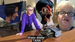 Prezident komunista, který se překabátil. Politručka, jeho manželka, která dělá ještě větší ostudu, než on, který si nadělal do slipů...